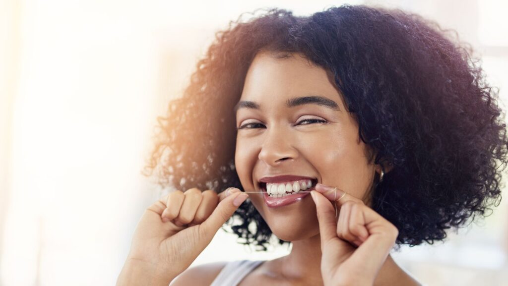 Floss once daily to remove food and plaque between teeth. If flossing is hard, use floss picks or a water flosser. Clean the tongue with a scraper or the toothbrush to reduce bacteria and bad breath.